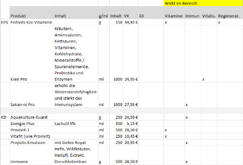 Naturnahe, gesunde Ernährung beseitigt die meisten hausgemachten Probleme. Die Naturstoffe sind so präpariert, dass sie den angefeuchteten Futterpellet, ob sinkend oder schwimmend, ummanteln und im Wasser nicht abspülen. 1/4l Pellets erhalten dadurch den Nährwert eines ganzen Liters.