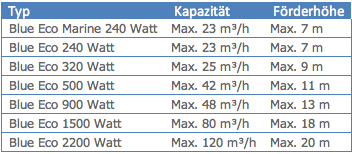 Blue Eco Pumpen sind geeignet für Seewasser.